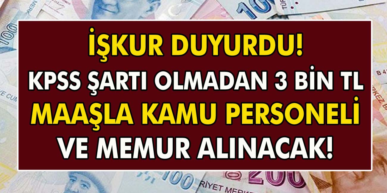 İŞKUR Duyurdu! KPPS Şartı Olmadan 3 Bin TL Maaşla Kamu Personeli Ve Memur Alınacak!