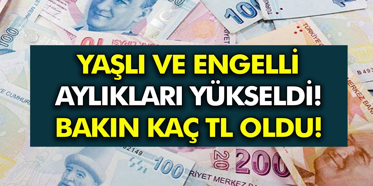 Yaşlı ve engelli ödemeleri arttı. Aile Bakanı Yanık, yeni aylıkları açıkladı. Memur maaşlarındaki artışla beraber yaşlı aylığı 1.084 TL'ye, sosyal ekonomik destek ödemesi 1.649 TL'ye yükseldi. Yüzde 40-69 arası engelli aylığı 865 TL, %70 ve üzeri engelli aylığı 1.298 TL, evde bakım yardımı 2.354 TL oldu.